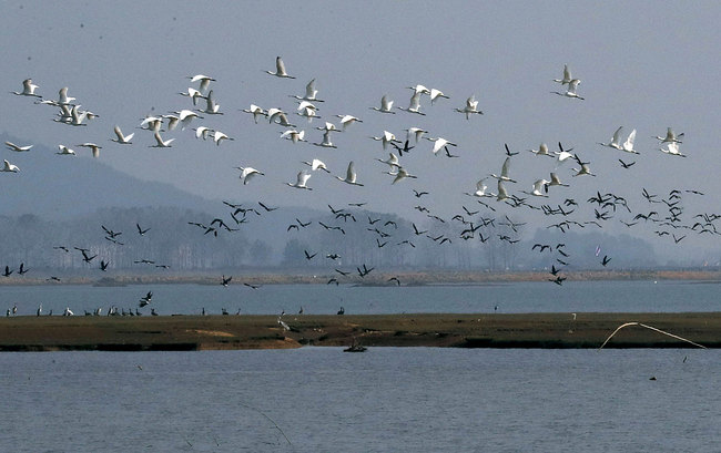 Първата партида мигриращи птици включваше главно птици от семейство Патицови, сред тях бяха забелязани бели лопатарки и белочелите гъски, които са защитен вид в Китай от второ ниво.