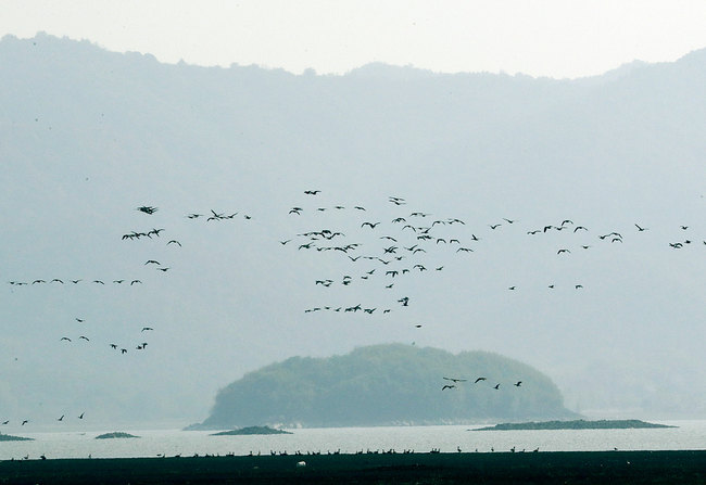 Десетки хиляди от първата партида мигриращи птици прелетяха на групи над езерото Цайдзъ в град Анцин, провинция Анхуей.