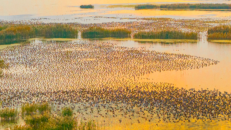 Прелетни птици мигрират във влажните зони на езерото Хундзъ